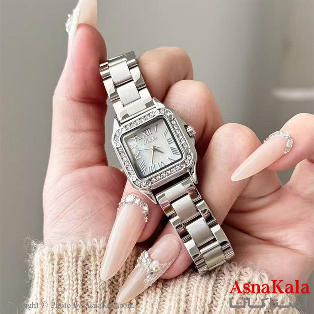 ساعت زنانه اسکاتی از جنس بدنه فلزی است، که در بسته بندی هدیه توسط آسناکالا به فروش می رسد.